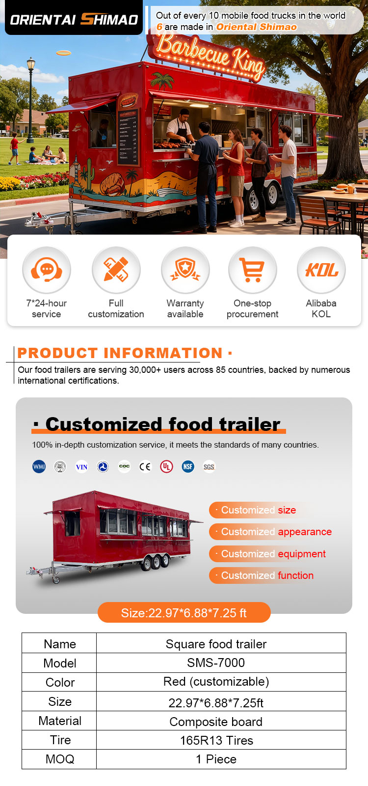 เราสามารถเสนอรถพ่วงจัดเลี้ยงอาหารได้: DOT, CE, SGS, SCI, ISO, COC,