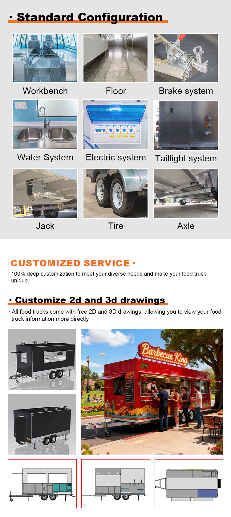 อุปกรณ์รถบรรทุกอาหาร อุปกรณ์ครัวเชิงพาณิชย์ การจัดเลี้ยง รถพ่วงอาหารมือถือ รถบรรทุกอาหาร