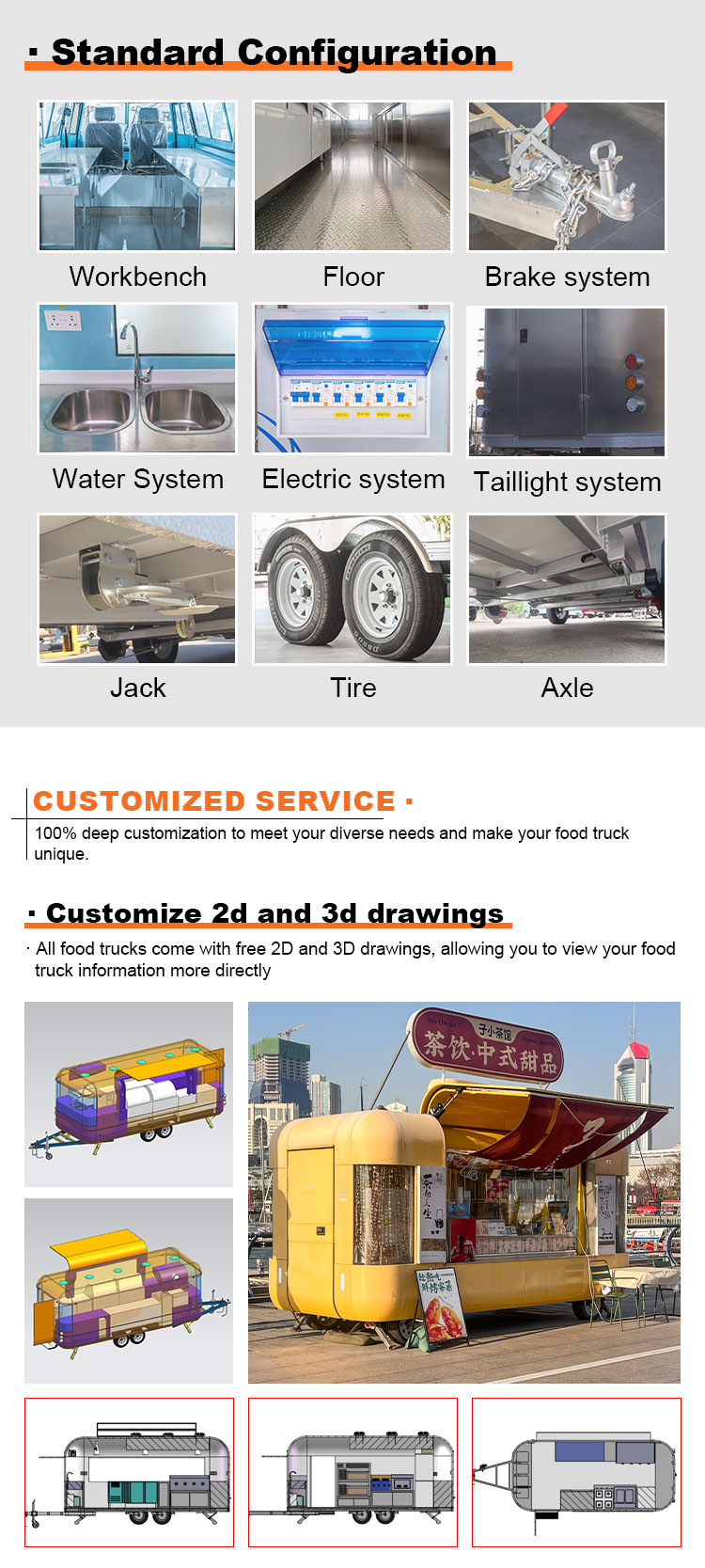 รถเข็นขนมหวาน ห้องครัวเคลื่อนที่ รถเข็นอาหารริมถนน การจัดเลี้ยง รถพ่วงอาหาร รถบรรทุกอาหาร