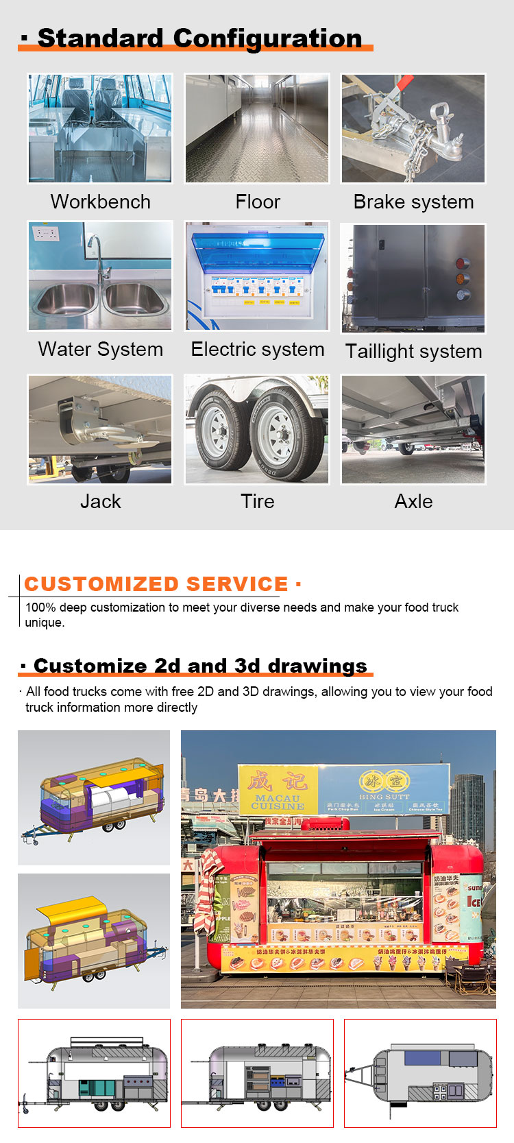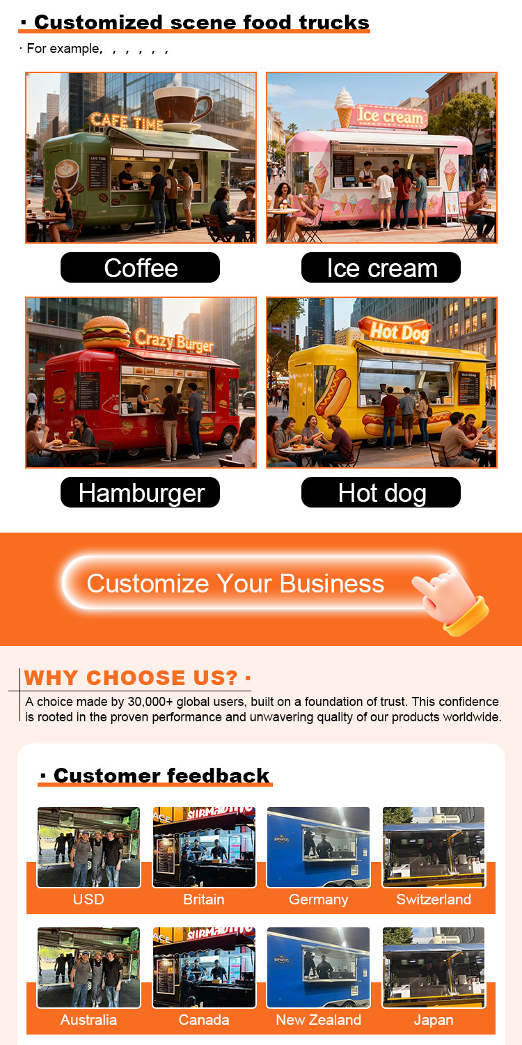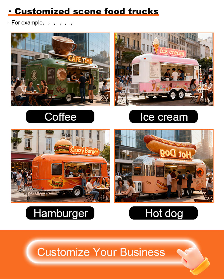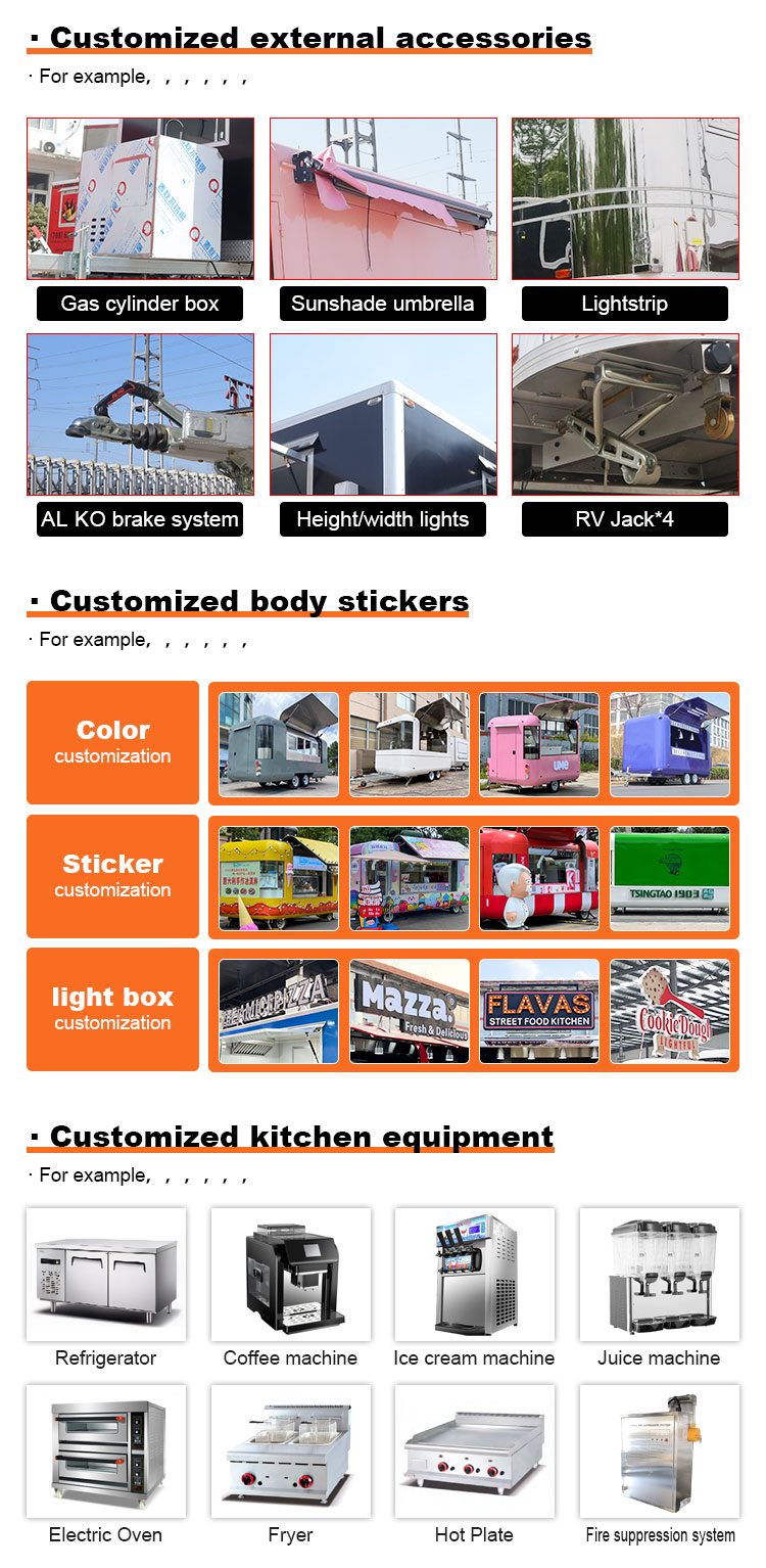 รถเข็นขนมหวาน ห้องครัวเคลื่อนที่ รถเข็นอาหารริมถนน การจัดเลี้ยง รถพ่วงอาหาร รถบรรทุกอาหาร