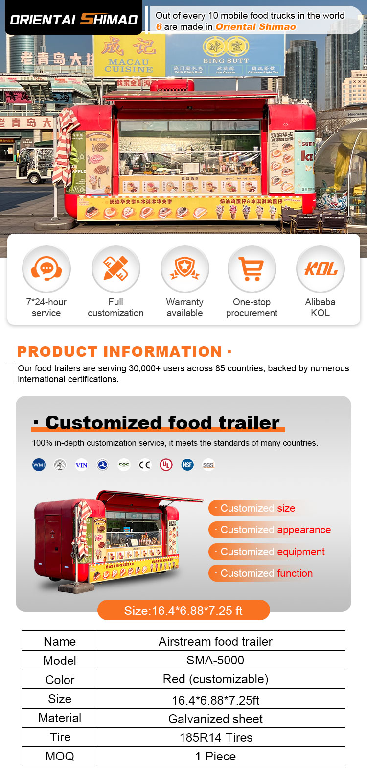 เราสามารถเสนอรถพ่วงจัดเลี้ยงอาหารได้: DOT, CE, SGS, SCI, ISO, COC,