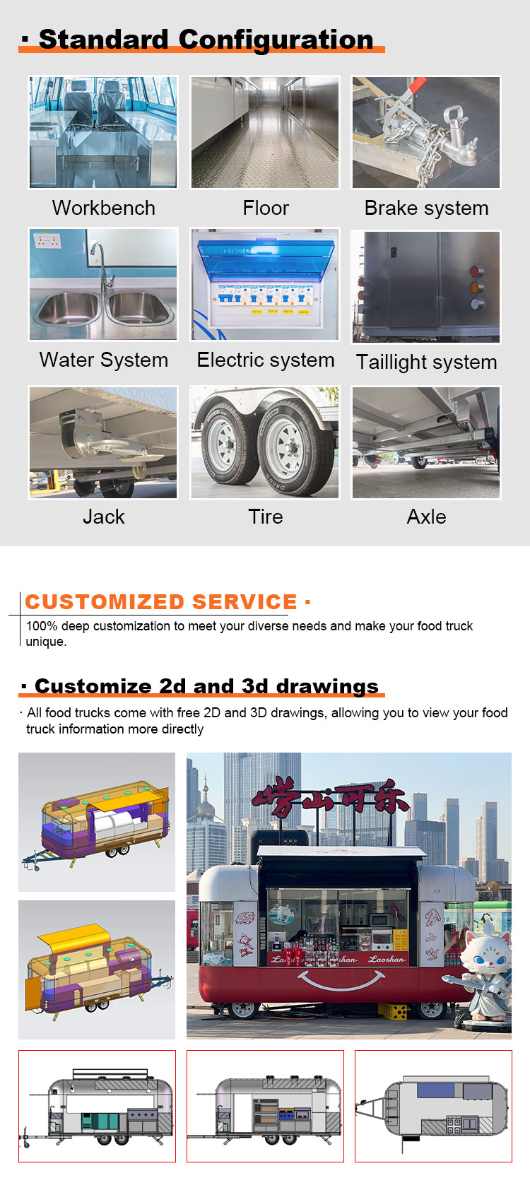 รถเข็นขนมหวาน ห้องครัวเคลื่อนที่ รถเข็นอาหารริมถนน การจัดเลี้ยง รถพ่วงอาหาร รถบรรทุกอาหาร