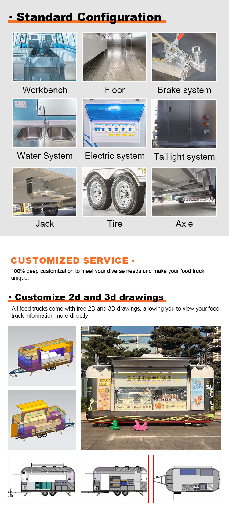 รถเข็นขนมหวาน ห้องครัวเคลื่อนที่ รถเข็นอาหารริมถนน การจัดเลี้ยง รถพ่วงอาหาร รถบรรทุกอาหาร