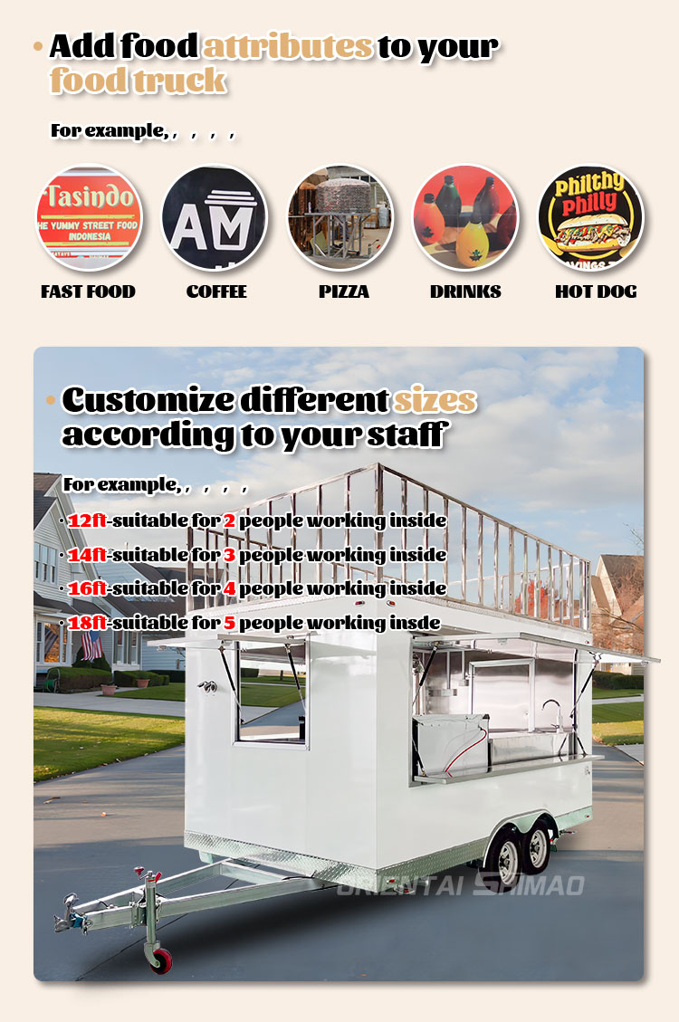 การปรับแต่งขนาด: นอกเหนือจากขอบเขตแบบเดิมๆ เราทำลายกรอบขนาดของรถขายอาหารทั่วไป และมอบความเป็นไปได้ที่ไม่จำกัดของโซลูชันการปรับแต่งขนาดให้กับคุณ ไม่ว่าคุณกำลังมองหา Food Truck ขนาดเล็กที่เล็กกระทัดรัด เดินทางสะดวก ในตรอกซอกซอยในเมือง หรือร้านอาหารเคลื่อนที่สุดหรูที่ต้องการพื้นที่กว้างขวางเพื่อรองรับลูกค้าและอุปกรณ์ได้มากขึ้น เราก็สามารถวัดผลได้อย่างแม่นยำและออกแบบอย่างรอบคอบตามความต้องการเฉพาะของคุณ เพื่อสร้างขนาด Food Truck ที่ตรงกับความต้องการที่แท้จริงและเต็มไปด้วยความคิดสร้างสรรค์