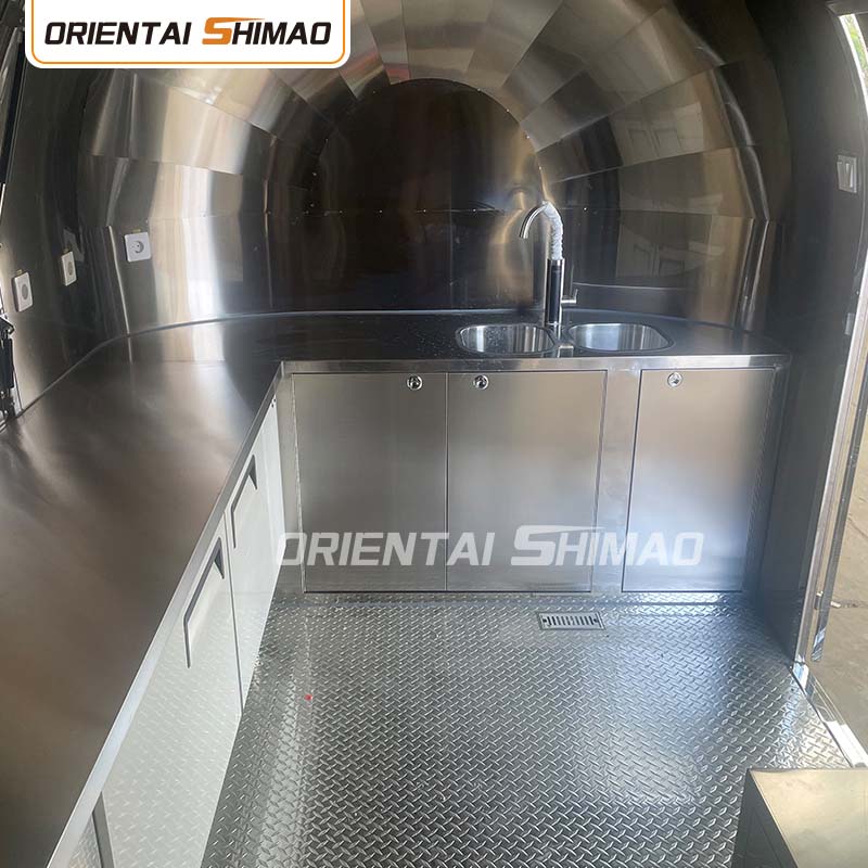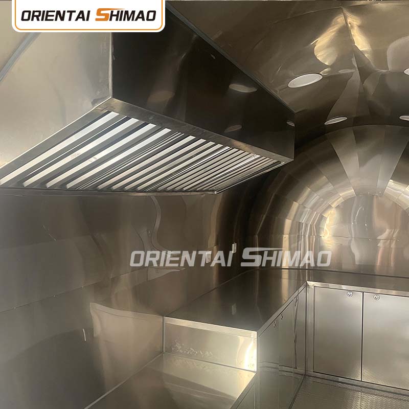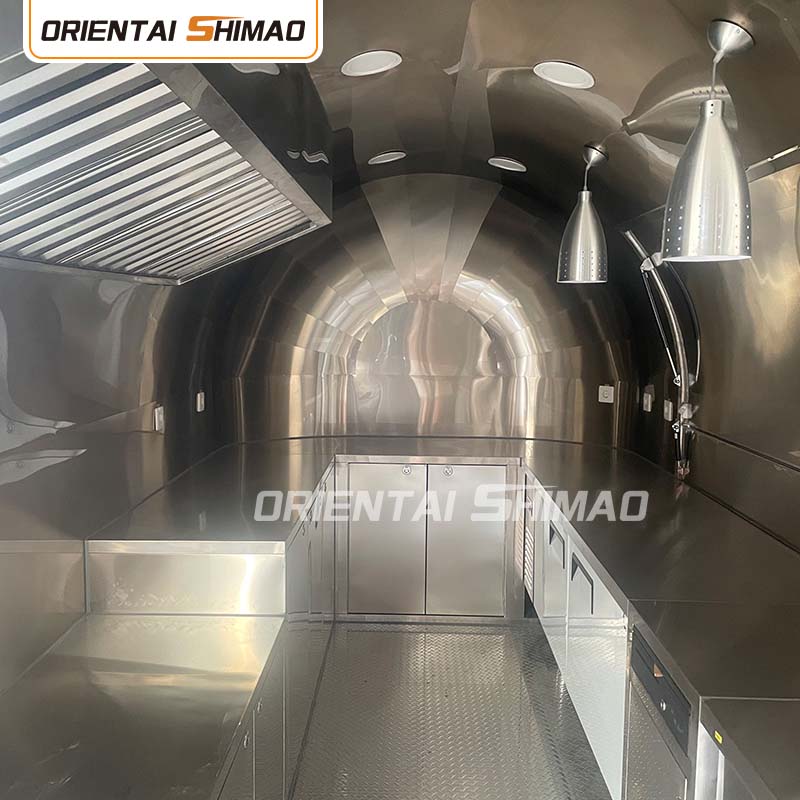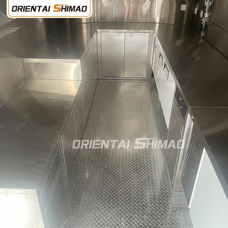 ภายในทำจากสแตนเลส: ภายในทำจากสแตนเลส ทำให้ภายในแข็งแรงและทนทาน ทำความสะอาดและบำรุงรักษาได้ง่าย และตรงตามมาตรฐานสุขอนามัยอาหาร การใช้สแตนเลสไม่เพียงแต่ช่วยยืดอายุการใช้งานของรถจำหน่ายอาหารเท่านั้น แต่ยังรับประกันสุขอนามัยและความปลอดภัยของกระบวนการเตรียมอาหารอีกด้วย