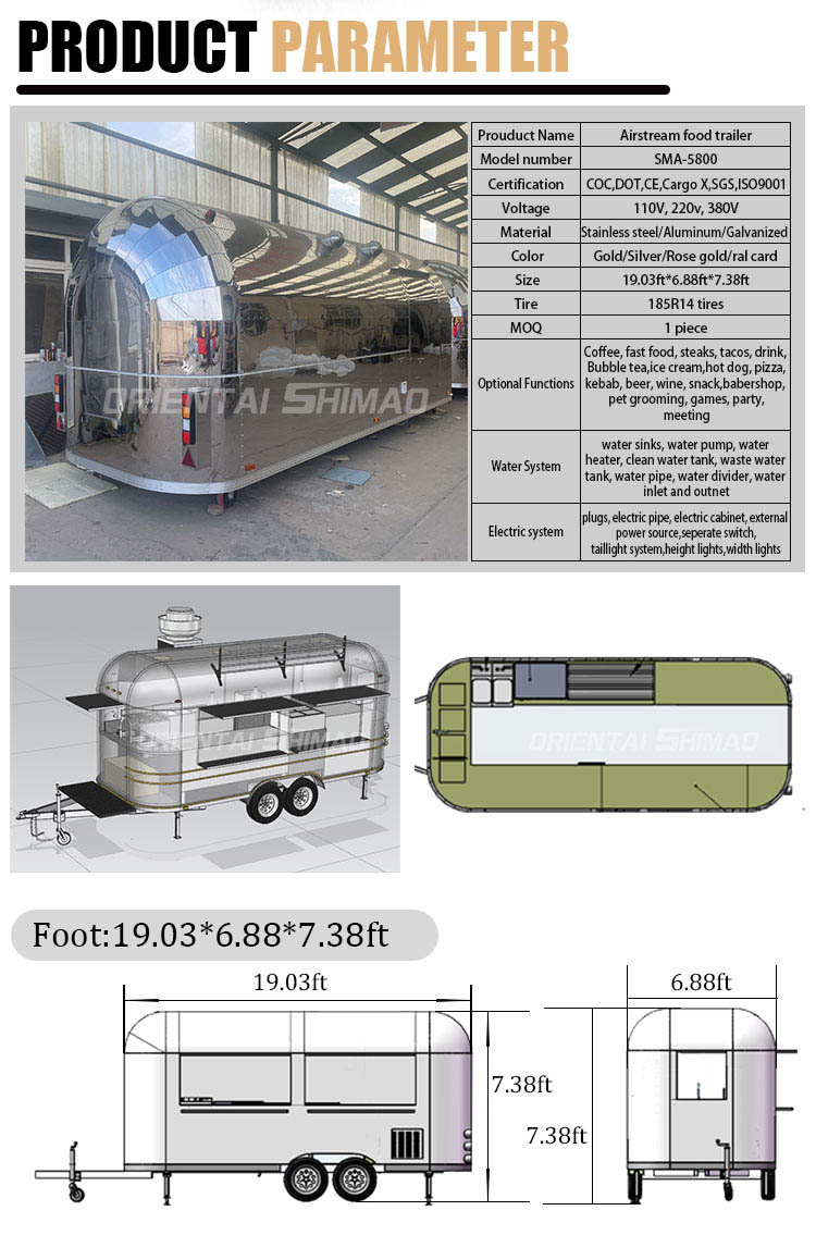 เราสามารถนำเสนอรถเข็นอาหารมือถือสำหรับขาย การรับรอง:DOT,CE,SGS,SCI,ISO,COC,