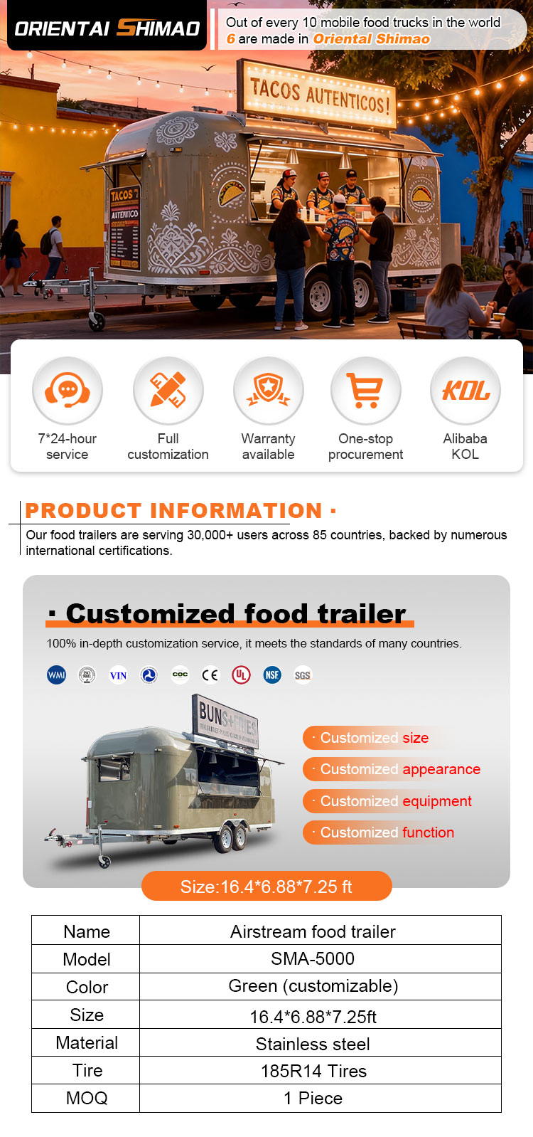เราสามารถเสนอรถพ่วงจัดเลี้ยงอาหารได้: DOT, CE, SGS, SCI, ISO, COC,