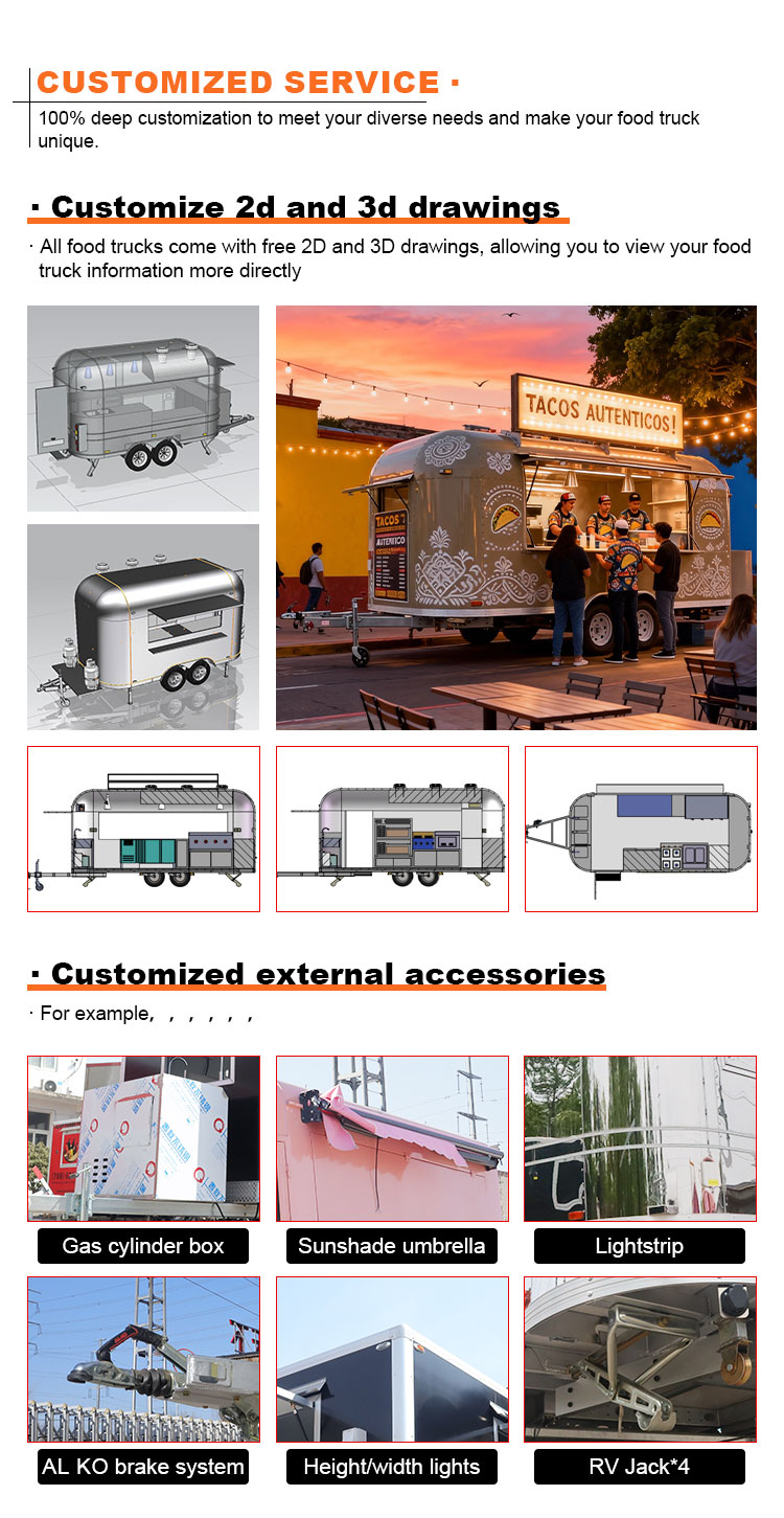 รถเข็นขนมหวาน ห้องครัวเคลื่อนที่ รถเข็นอาหารริมถนน การจัดเลี้ยง รถพ่วงอาหาร รถบรรทุกอาหาร