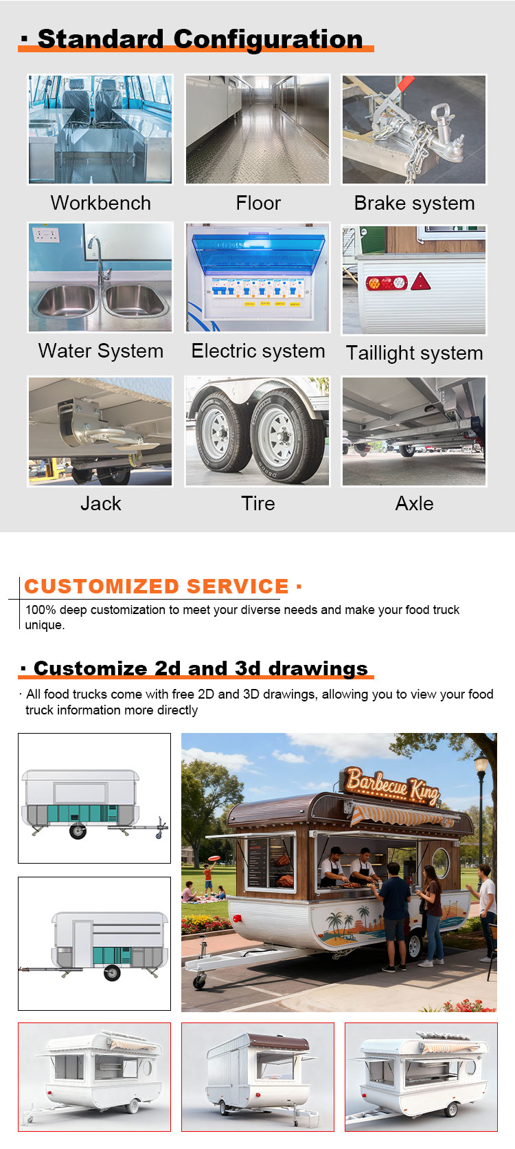 รถเข็นขนมหวาน ห้องครัวเคลื่อนที่ รถเข็นอาหารริมถนน การจัดเลี้ยง รถพ่วงอาหาร รถบรรทุกอาหาร