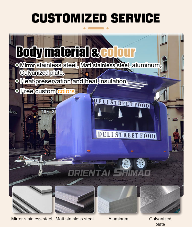 รถเทรลเลอร์ฟู้ดใช้สแตนเลสเป็นวัสดุหลักซึ่งโดดเด่นด้วยความต้านทานการกัดกร่อนความแข็งแรงสูงทำความสะอาดสวยงามและทนทาน พื้นผิวของมันเป็นชั้นโครเมียมออกไซด์หนาแน่นป้องกันการกัดกร่อนของโลหะได้อย่างมีประสิทธิภาพและสร้างความมั่นใจในความปลอดภัยของอาหารและสุขอนามัย สแตนเลสมีรูปลักษณ์ที่สดใสแข็งแรงและทนทานทำความสะอาดและบำรุงรักษาได้ง่ายด้วยความรู้สึกทันสมัยสอดคล้องกับความต้องการด้านสุขภาพสิ่งแวดล้อม ดังนั้นรถพ่วงอาหารขนาดใหญ่ที่มีอุปกรณ์ครบครันจึงเหมาะสำหรับการแปรรูปอาหารและสภาพแวดล้อมการขายเพื่อตอบสนองความต้องการของลูกค้าสำหรับคุณภาพผลิตภัณฑ์และมาตรฐานสุขภาพ
