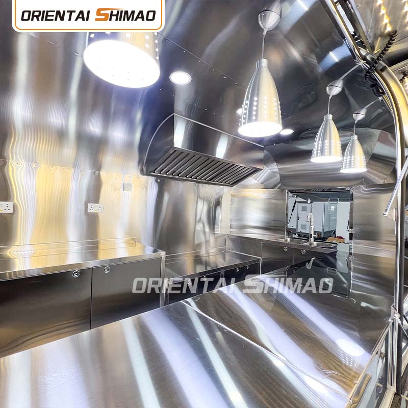 รถเข็นอาหาร ห้องครัวเคลื่อนที่ อุปกรณ์ร้านอาหารเชิงพาณิชย์ การจัดเลี้ยง รถพ่วงอาหารไฟฟ้า Street Use Food Truck
