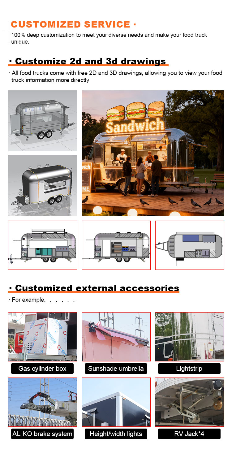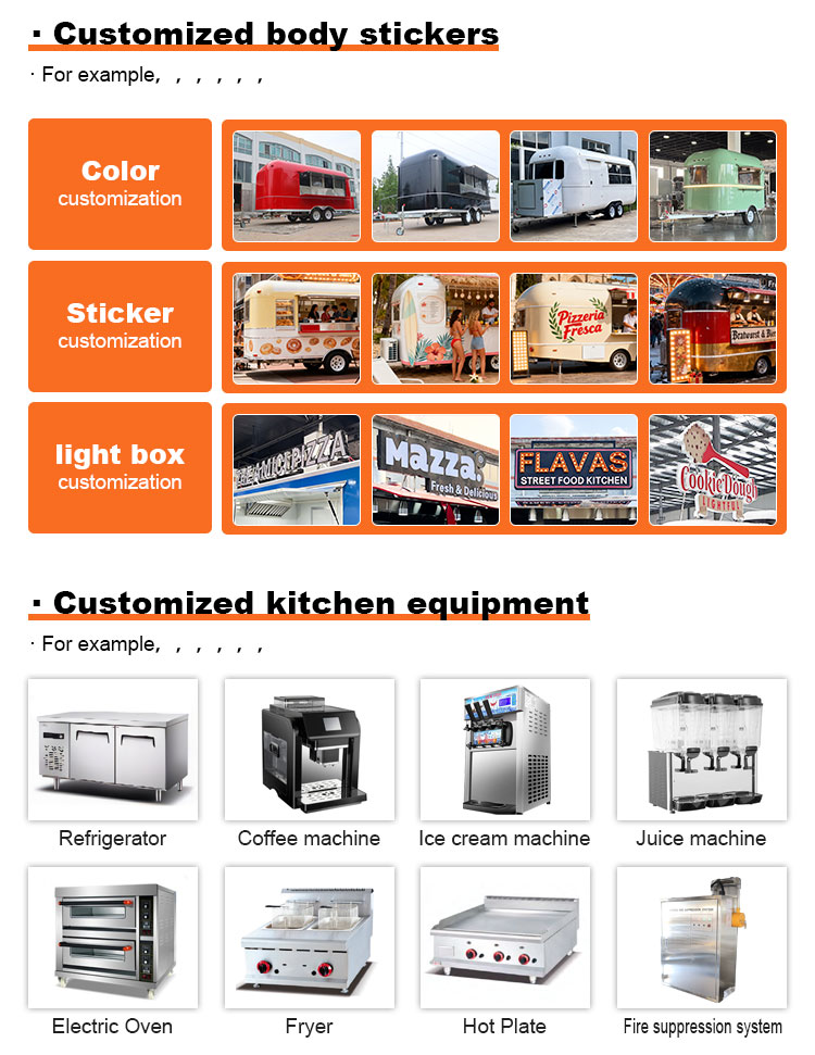 รถเข็นขนมหวาน ห้องครัวเคลื่อนที่ รถเข็นอาหารริมถนน การจัดเลี้ยง รถพ่วงอาหาร รถบรรทุกอาหาร