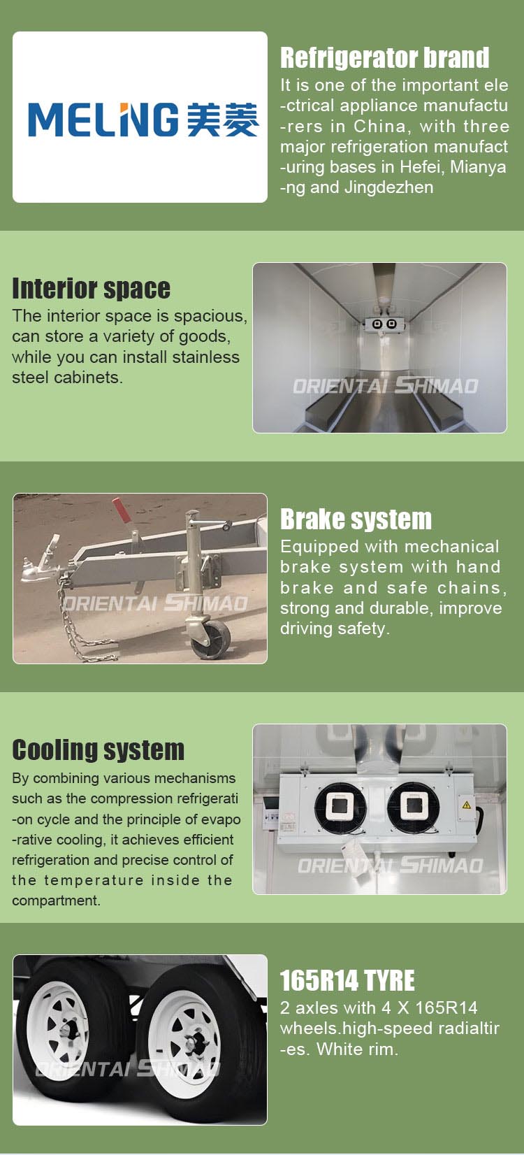 การควบคุมอุณหภูมิที่แม่นยำ: รถพ่วงห้องเย็นของเรามีระบบทำความเย็นแบบปรับได้ที่สามารถรักษาอุณหภูมิได้หลากหลาย ตั้งแต่อุณหภูมิความเย็นเชิงบวกไปจนถึงจุดเยือกแข็งที่อุณหภูมิต่ำสุด -18°C (-0.4°F) ช่วยให้มั่นใจได้ถึงการเก็บรักษาที่เหมาะสมที่สุดสำหรับรายการอาหารที่หลากหลาย ตั้งแต่ผลิตผลสดไปจนถึงสินค้าแช่แข็ง