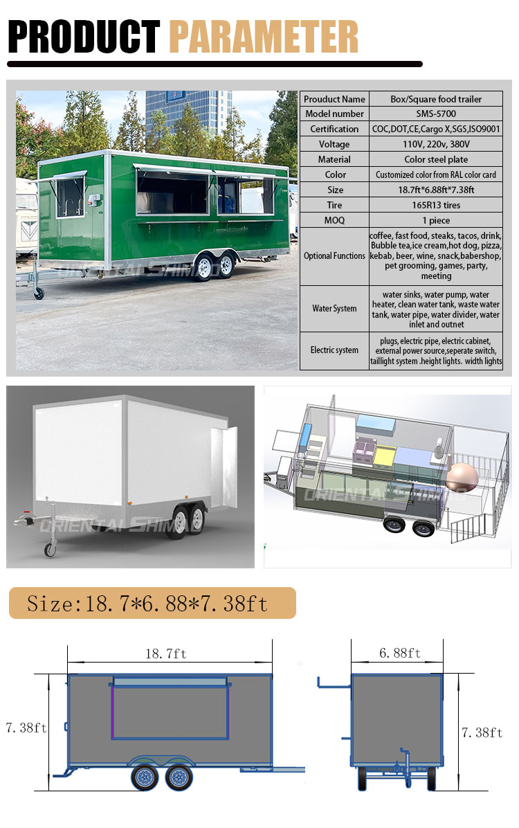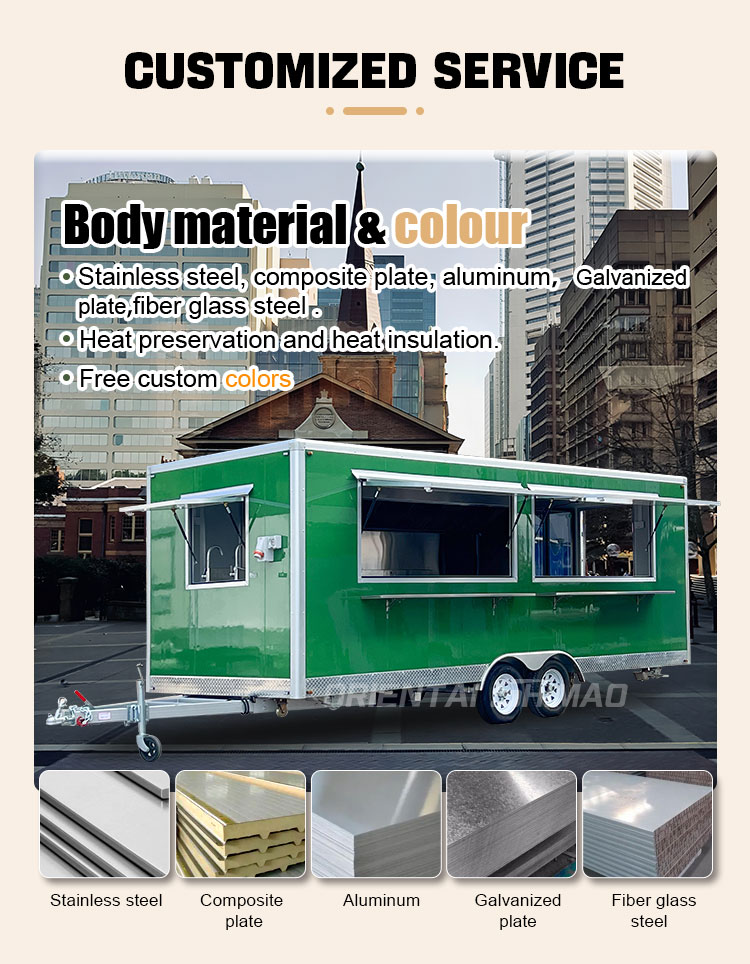 ฟังก์ชั่นเพิ่มเติม: เพิ่มฟังก์ชั่นเพิ่มเติมอื่นๆ ตามความต้องการของลูกค้า เช่น การทำความเย็นและการเก็บรักษาความสด การทำความร้อนและการเก็บรักษาความร้อน กันน้ำและป้องกันไฟฟ้า ฯลฯ เพื่อเพิ่มการใช้งานจริงและความปลอดภัยของรถขายอาหาร