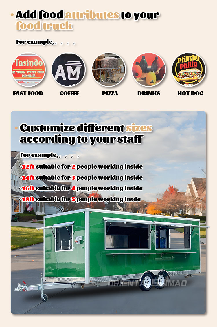 เราสามารถนำเสนอรถเข็นอาหารมือถือสำหรับขาย การรับรอง:DOT,CE,SGS,SCI,ISO,COC,