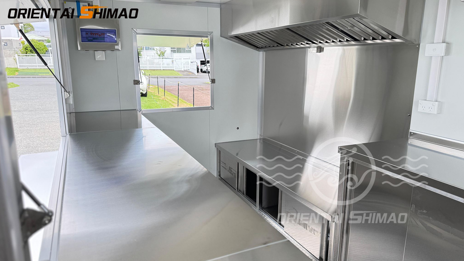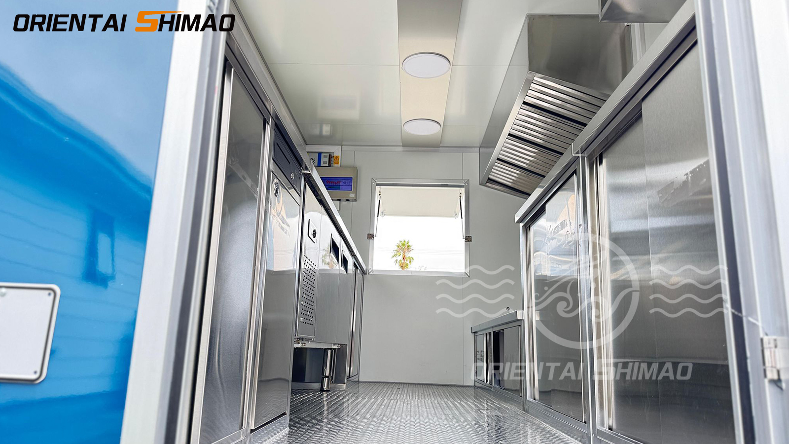 พร้อมกับระบบน้ำและไฟฟ้าที่ครอบคลุมรถบรรทุกอาหารนี้มอบประสบการณ์ผู้ใช้ที่ไม่มีใครเทียบ ทั้งพื้นที่ทำงานและตู้ได้รับการออกแบบมาจากสแตนเลส 304 ที่แข็งแกร่งทำให้มั่นใจได้ถึงความทนทานและความสะดวกในการทำความสะอาดในขณะที่ต่อต้านการเกิดสนิม นอกจากนี้ตู้เย็นยังติดตั้งอยู่ใต้โต๊ะทำงานเพื่อป้องกันการเน่าเสียของอาหาร