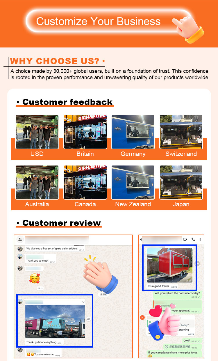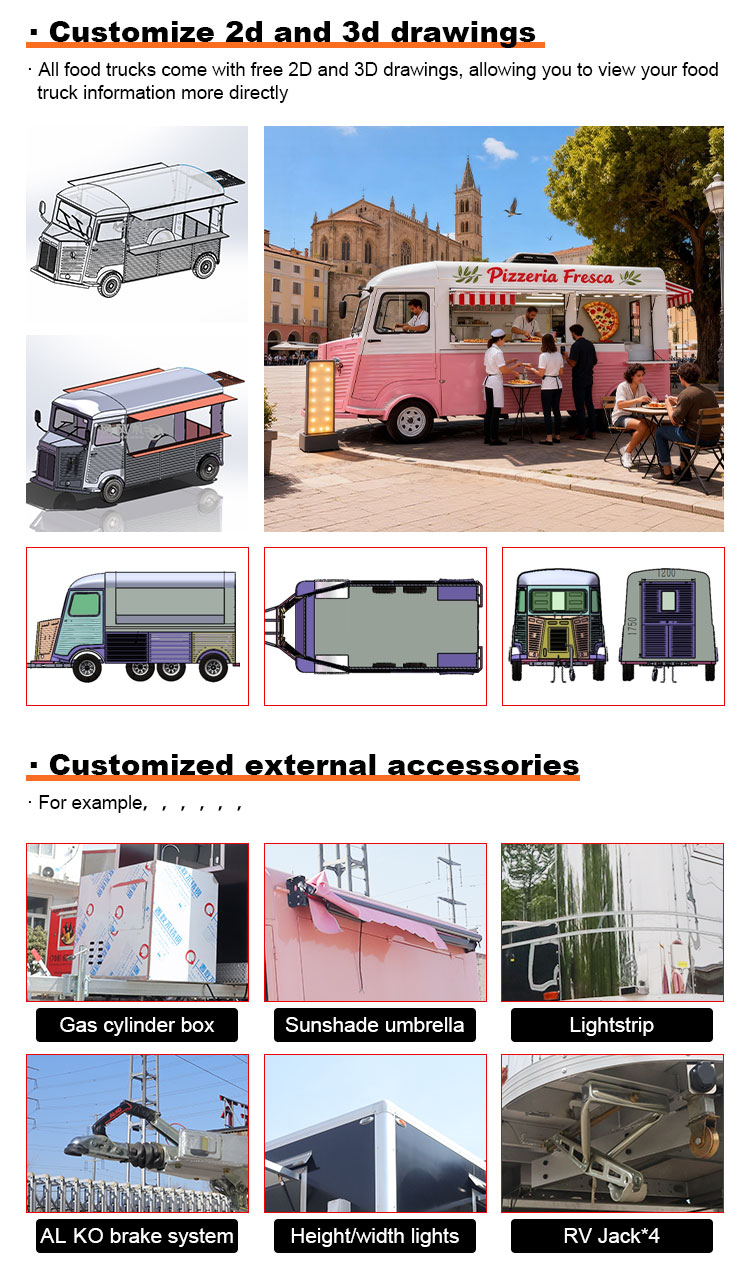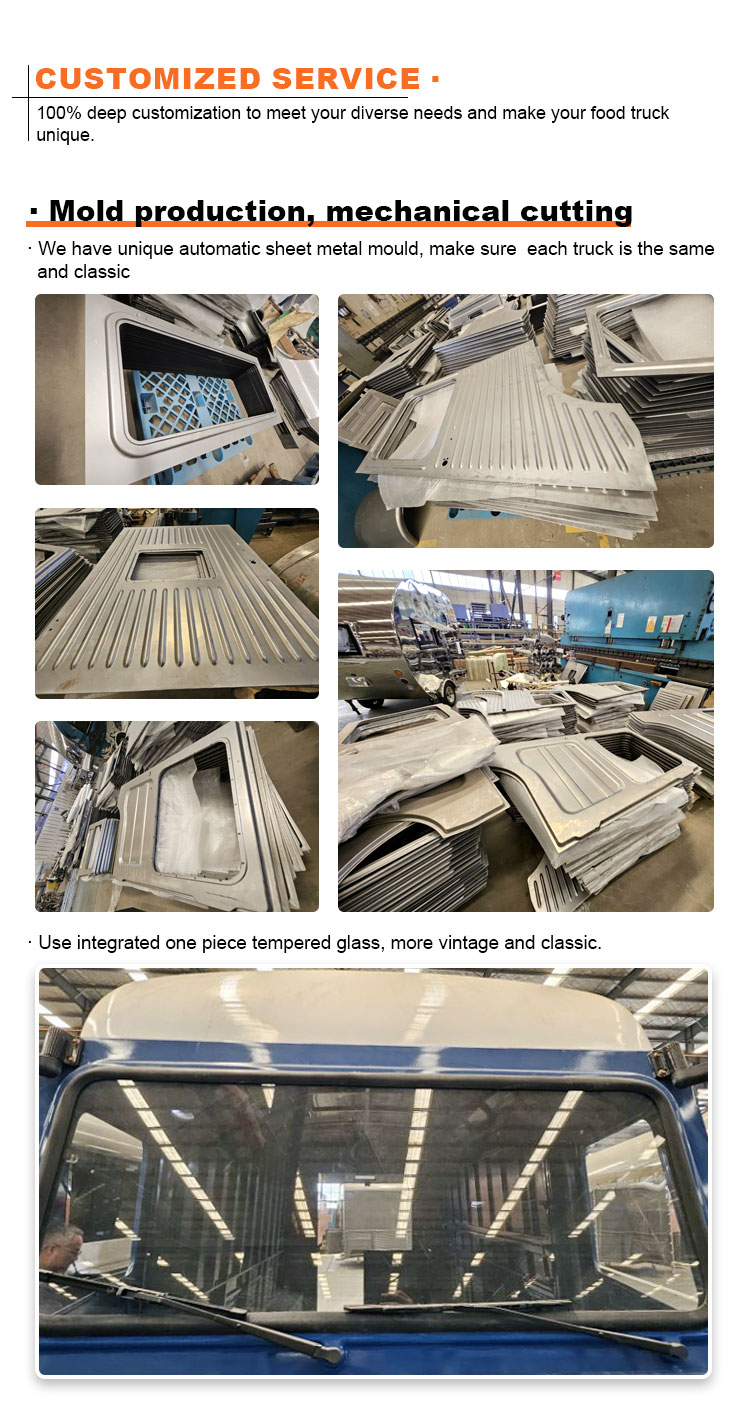 ฟังก์ชั่นเพิ่มเติม: เพิ่มฟังก์ชั่นเพิ่มเติมอื่นๆ ตามความต้องการของลูกค้า เช่น การทำความเย็นและการเก็บรักษาความสด การทำความร้อนและการเก็บรักษาความร้อน กันน้ำและป้องกันไฟฟ้า ฯลฯ เพื่อเพิ่มการใช้งานจริงและความปลอดภัยของรถขายอาหาร