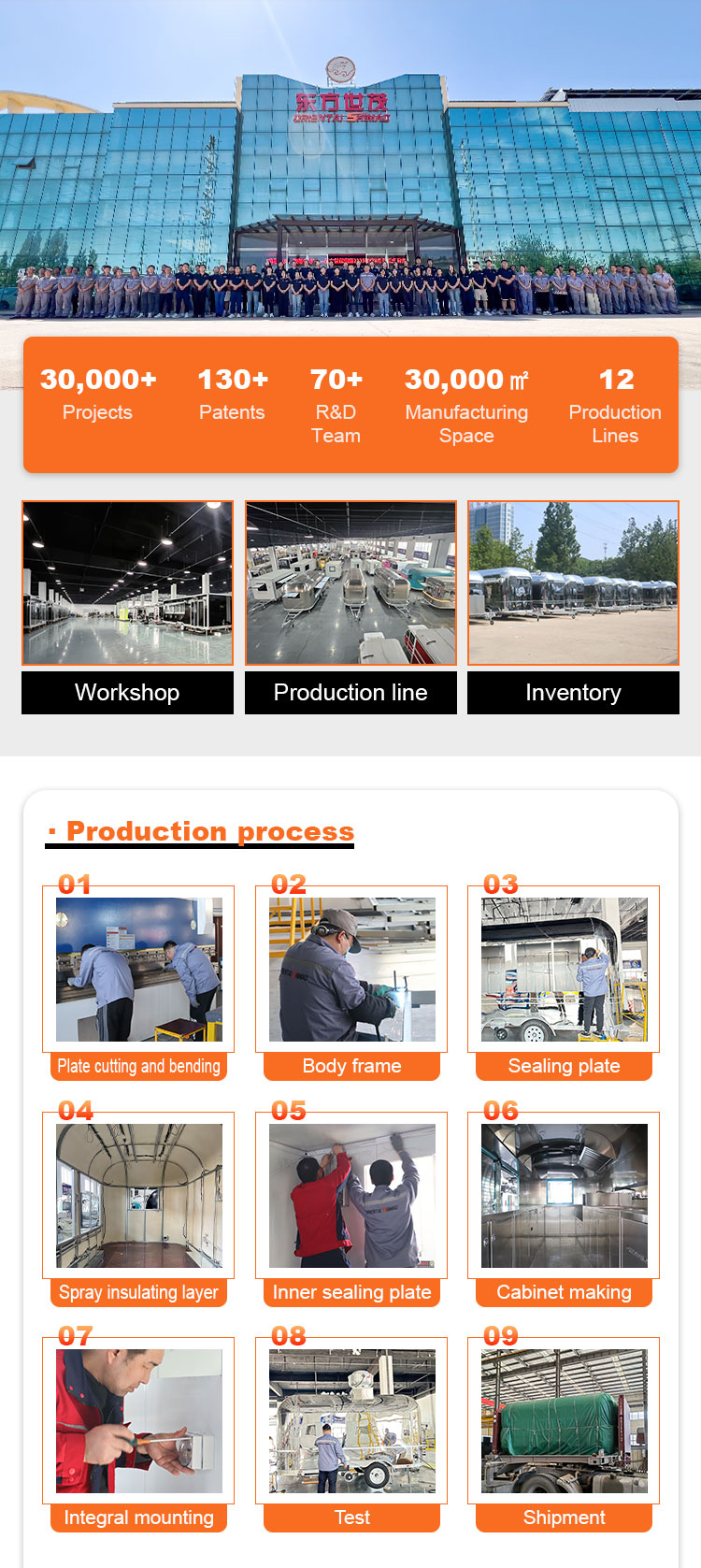 งานตัวถัง: ตามแผนการออกแบบ งานตัวถังจะถูกตัด เชื่อม ขัดเงา และกระบวนการอื่นๆ เพื่อให้มั่นใจว่าโครงสร้างตัวถังมีความมั่นคงและสวยงาม